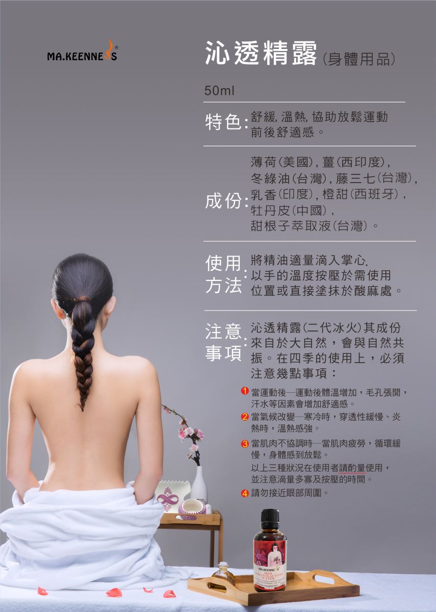 ☆舒緩、溫熱、放鬆肌肉 ☆調理肌膚、增加肌膚光澤明亮 ☆適用個人基礎保養或店家搭配療程使用