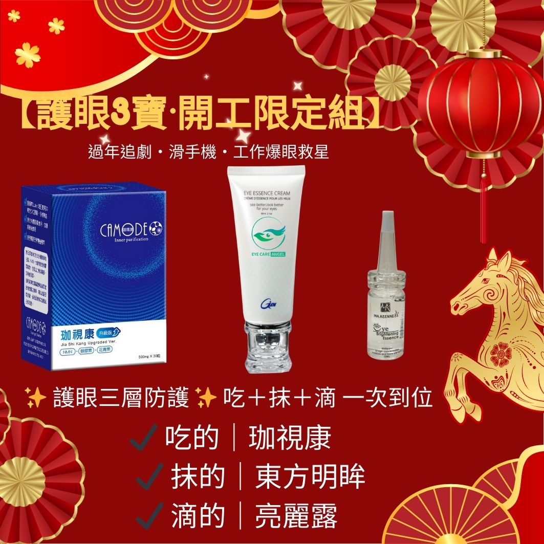 1. 珈視康1盒 30/粒 2. 東方明眸 60ML 3. 亮麗露 10ML